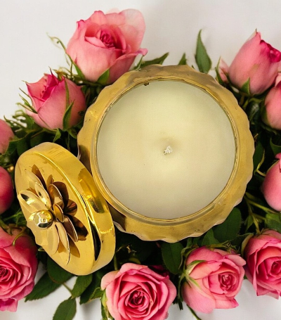 Golden Essence Candles are Available in 11 different fragrances including “Ocean Breeze, English Lavender, White Oud,  Ecuadorian Rose, Indian Sandalwood, Himalayan Musk, Italian Jasmine, Kashmiri Nargis, Thai Lemongrass, Valencia Oranges and Arabica Coffee.”